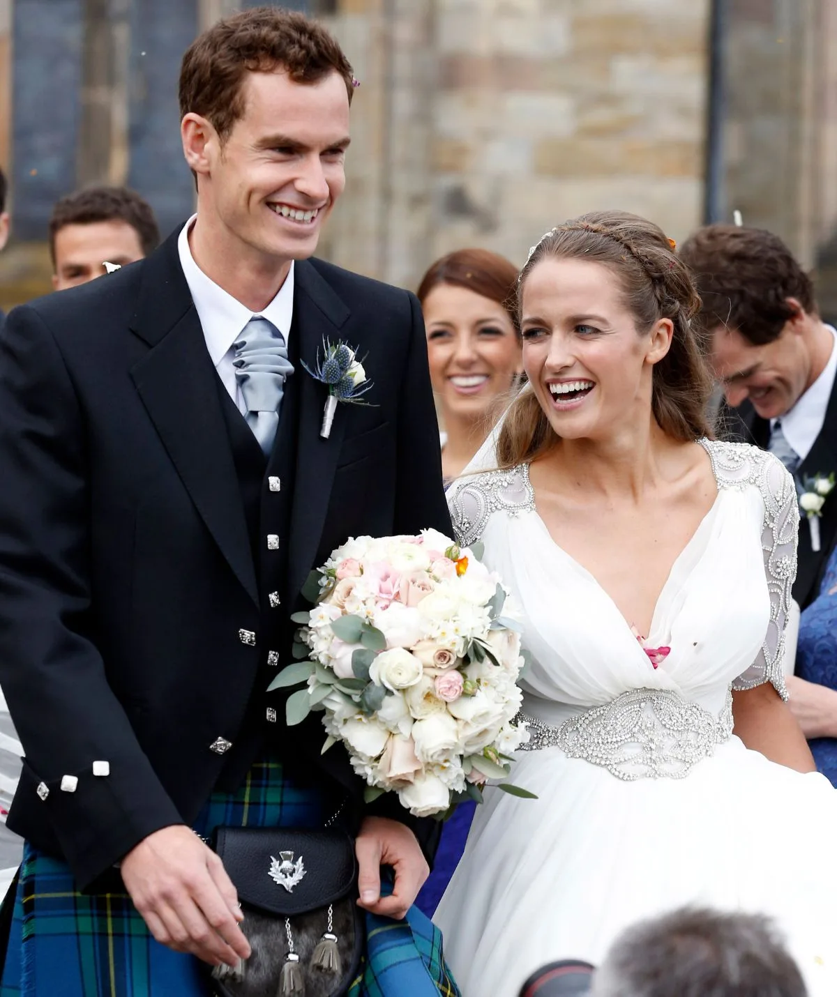 The ceremony took place at the Dunblane Cathedral and in tradition, Andy donned a kilt for the big dad while Kim wore a stunning Jenny Packham gown.