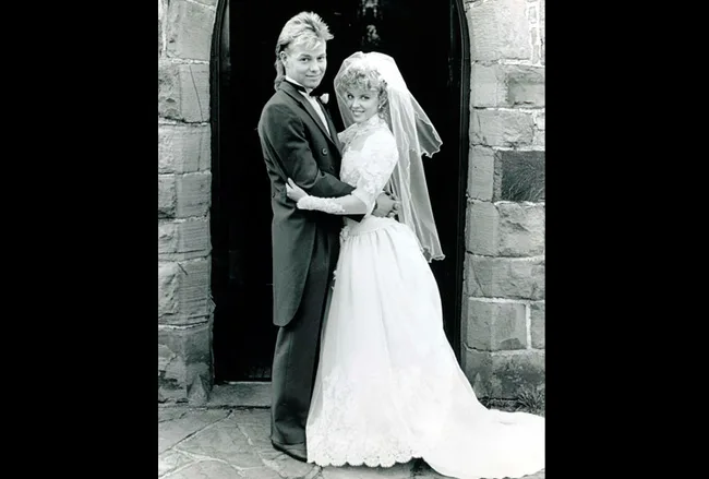 Kylie as ‘Charlene’ marries ‘Scott’, Jason Donovan in ‘Neighbours’in 1987.