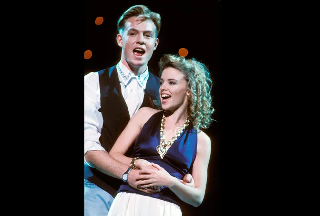 Kylie and Jason Donovan perform together.