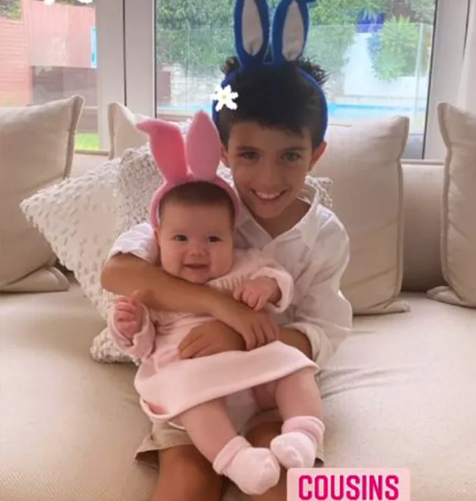 On her story, she posted a mouthwatering video of lamb on the spit and a sweet picture of her son, Johnas, embracing his baby cousin, Sofia, the family’s newest addition.