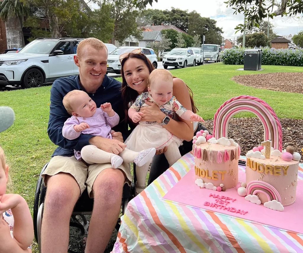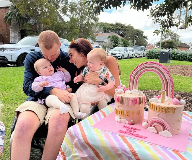 In January 2022 the family marked Teigan’s 28th birthday, Alex taking to Instagram with cute a photo of her holding their twins with their eldest girl in the background. He also shared a snap from the big day of the mother-of-three holding Harriet while they smiled at the bday cake.