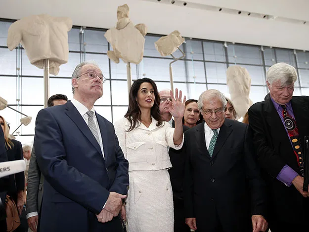 Amal toured the Acropolis museum in Athens along with the President of the museum and the Minister for Culture to admire some of the historic sculptures that remain behind.