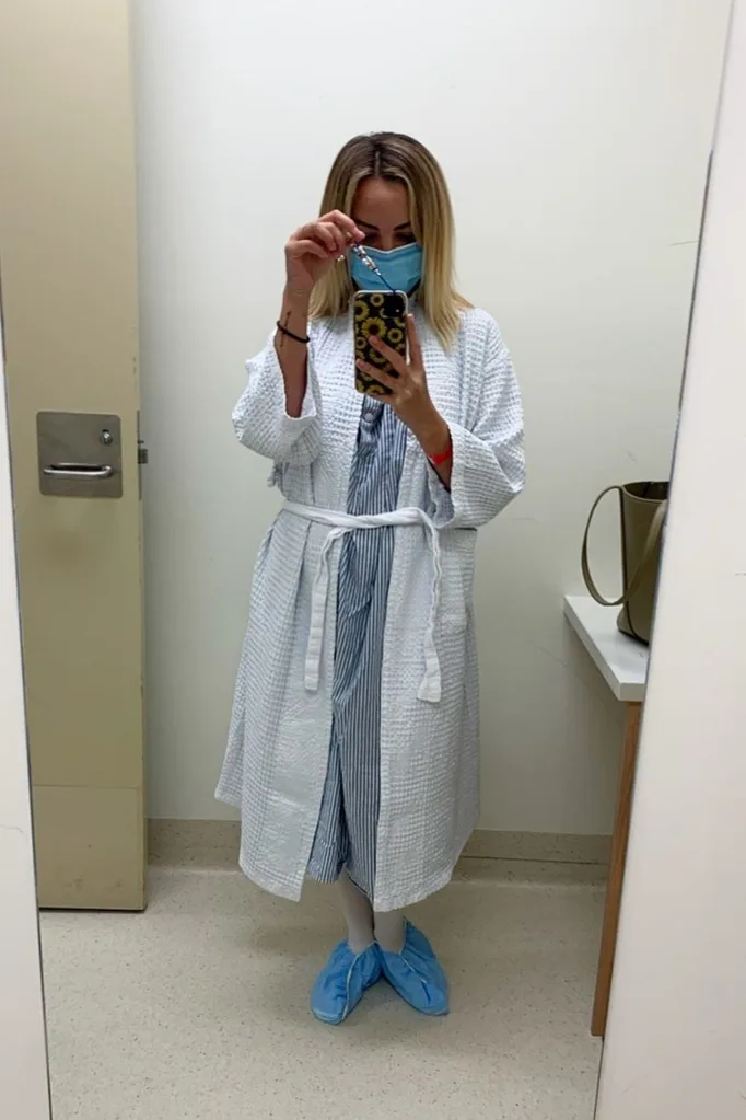 (Image: Instagram)“This was yesterday’s Valentine’s Day steeze. If you thought you were not feeling yourself. Just refer back to this- me in compression socks, this stripy surgery backless gown (hot), those farshionable surgical blue slippers and a diaper of sorts. You’re welcome,” she began.
