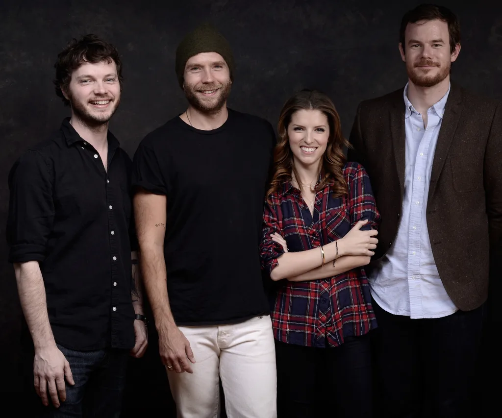 (L-R) Ben Richardson, actor Mark Webber, Anna Kendrick and director Joe Swanberg at the 2014 Sundance Film Festival to promote their movie Happy Christmas.