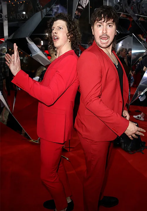 Children’s band Lah Lah came dressed for the occasion in red, black and white stripes, so at least if one gets lost they’ll be able to find them. Dance duo Peking Duk also got the red memo and turned up in matching suits.