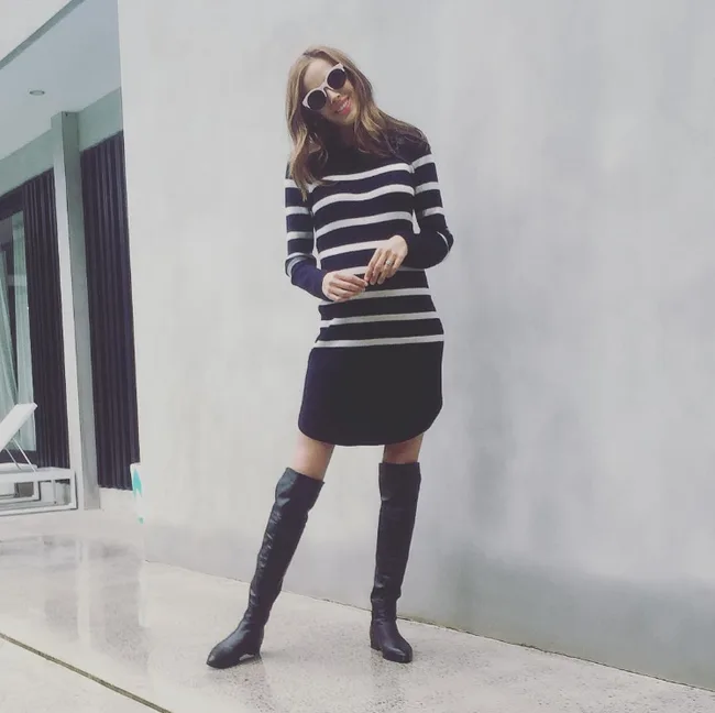 Bec posted this image of her gorgeous Country Road stripe dress just three weeks before giving birth to twins. That’s some serious stretch!
