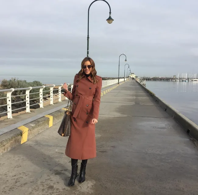 A belted Camilla and Marc coat to show off her gorgeous bump was everything Bec needed to keep warm in winter.