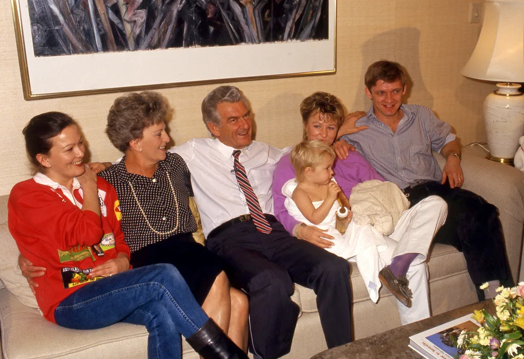 Bob Hawke with first wife Hazel and family on election night in Melbourne, 1987.