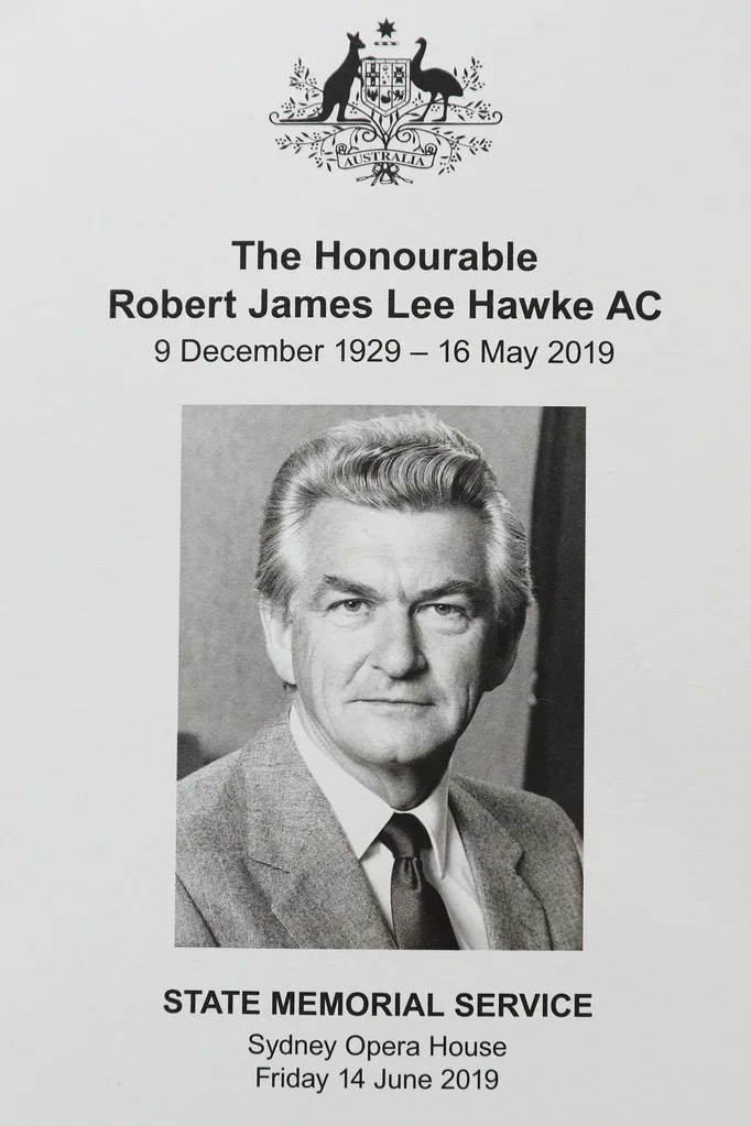 Order of service card during a State Memorial Service at Sydney Opera House on June 14, 2019.