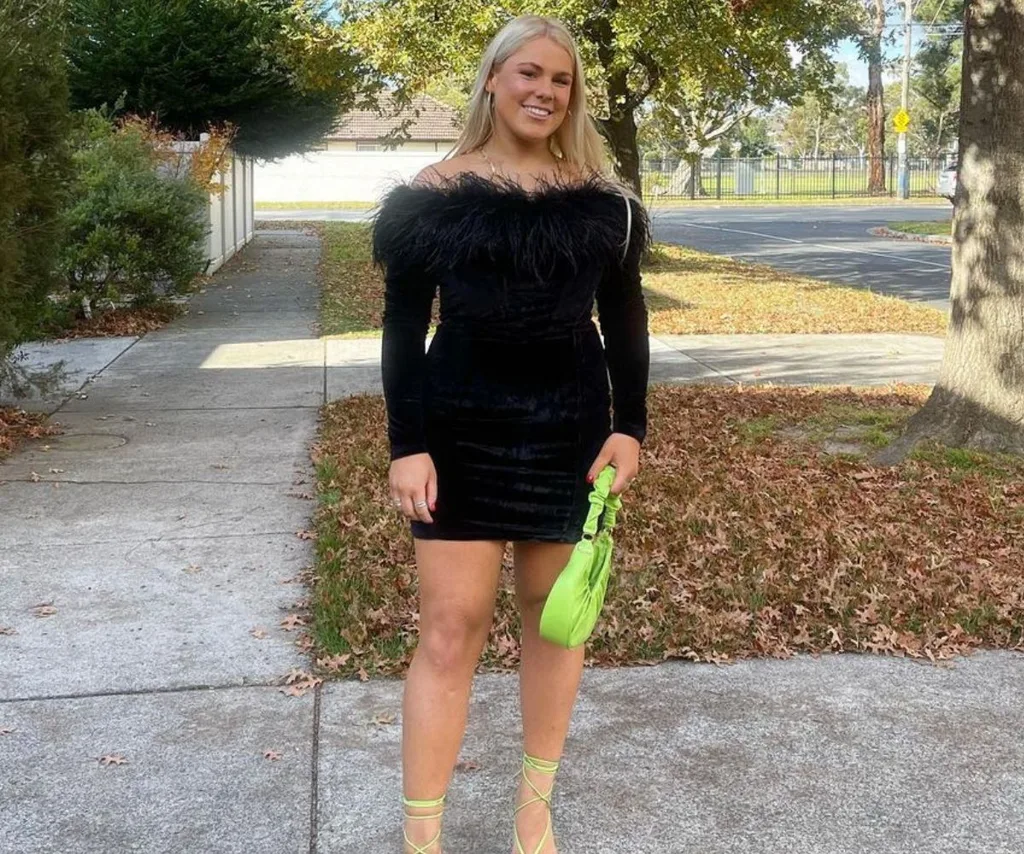 Brooke posing in front of her house in Melbourne.