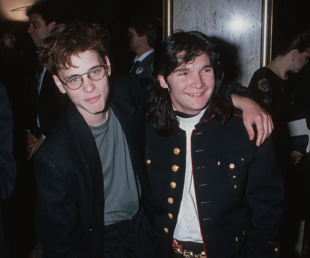 Corey Haim (L) with Corey Feldman (R). The pair starred in The Lost Boys together.