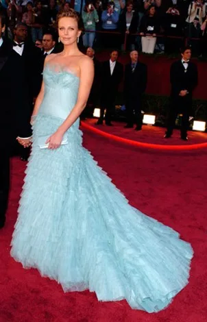 Just like her gold Oscar, Charlize wowed crowds in this gold number.