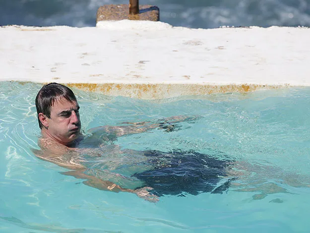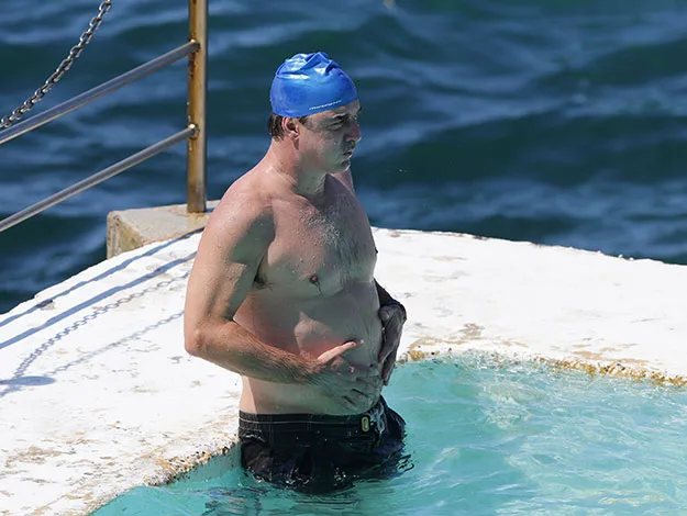 Chris Noth braved the cold water like a pro in Sydney as he went for a splash at Bondi Icebergs on his recent visit downunder.