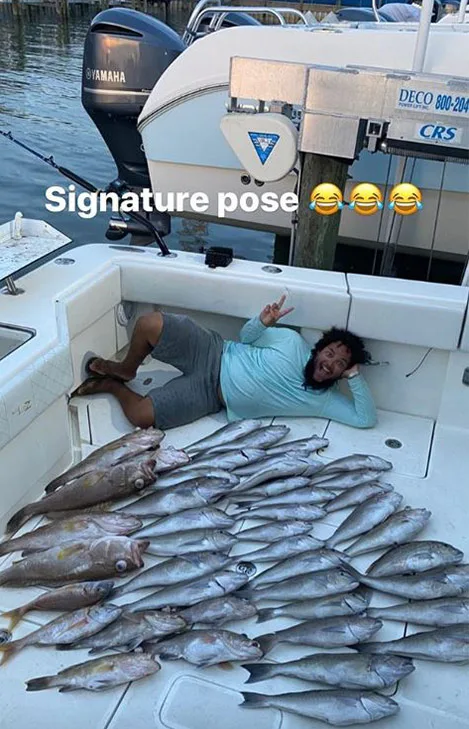 On Monday, the 25-year-old took to his Instagram stories to share a series of photos from a recent fishing trip.