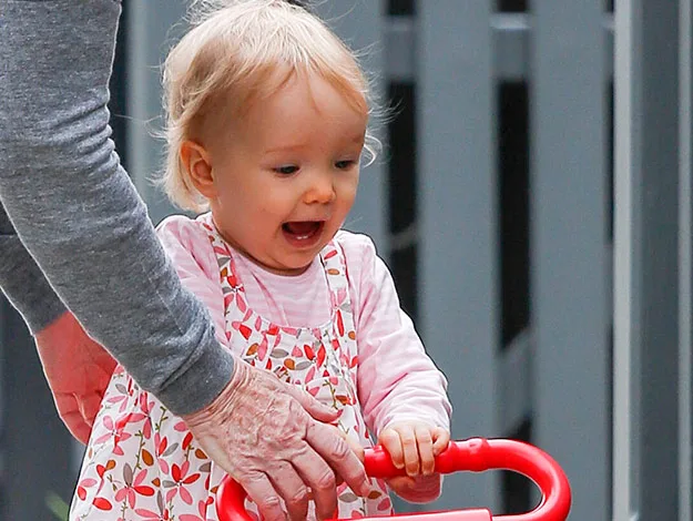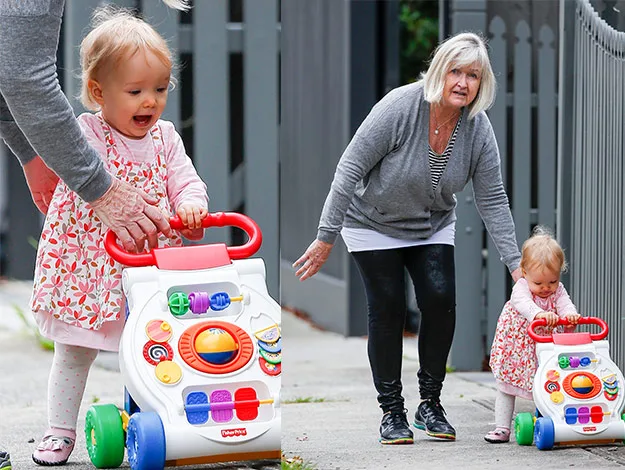 Smiles all around as Trixie learns to walk with grandma.