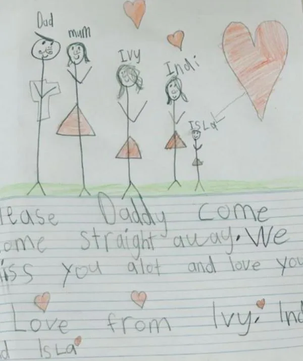 The artwork and messages created by his daughters were sweetly captioned, “Stay safe Daddy, come home as soon as you can. We love you. @davidwarner31 #staysafe (a letter from Ivy) ❤️🙏.”