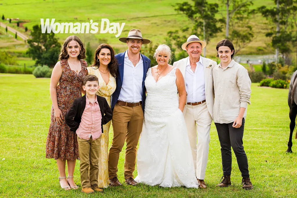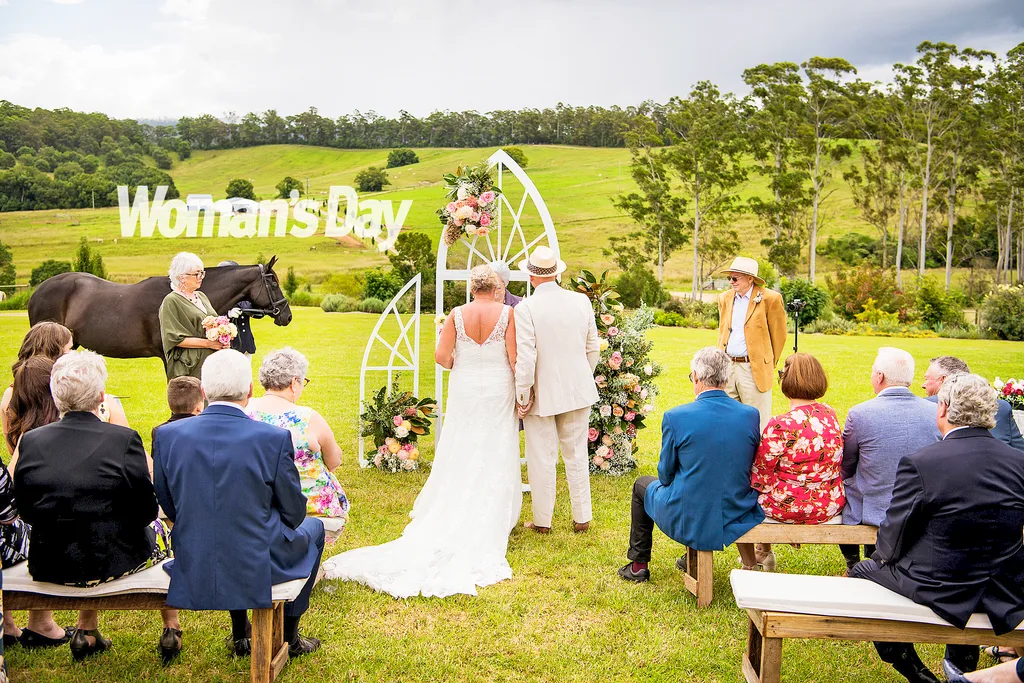 Looking out over the sprawling hills of their 125-acre property in Port Macquarie, the happy couple exchanged vows in an intimate ceremony in front of 42 of their closest family and friends earlier this month.