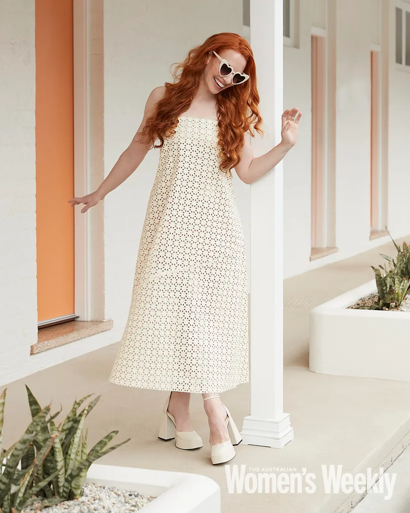 “I have one emotion: smiling,” quips Emma Watkins to The Weekly’s photographer who is directing today’s retro Palm Springs-vibe shoot at the Berry View Hotel in the Shoalhaven region of New South Wales.