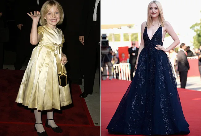 Dakota Fanning on the red carpet in 2001, and earlier this month.