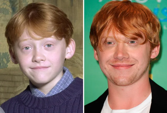Fellow *Harry Potter* alumni Rupert Grint in 2000 and September 2011.