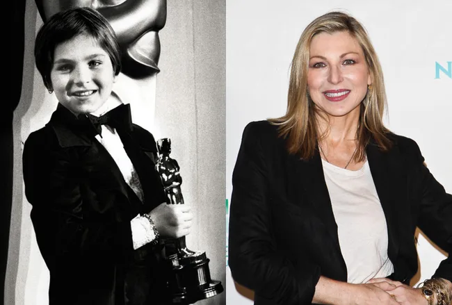 Tatum O’Neal at the 1974 Oscars and in October 2011.