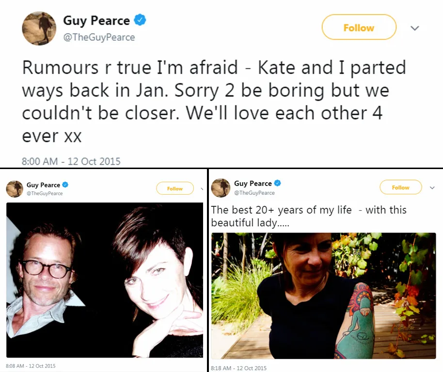 Guy announced his separation from his first wife via Twitter in October 2015.