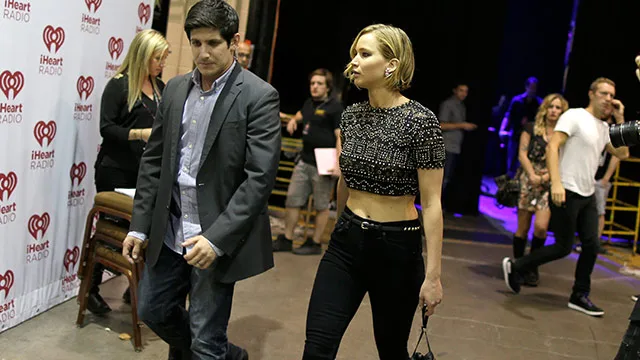 Nice try Chris, but we see you! Jennifer Lawrence hangs out back stage at Chris’ iHeart Radio gig.