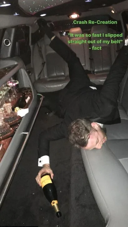 With an hour-and-a half left of limo hire, Hamish and Jack had a limo party in Andy’s honour.