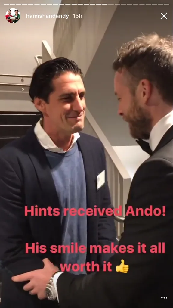 Undeterred, Hamish reassured Andy that he’d “picked up on [the] hints” and had made his way there.
