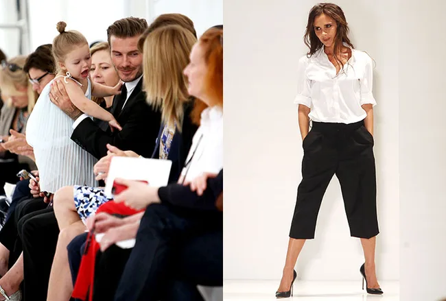 Harper with dad David in the front row and Victoria on the catwalk.