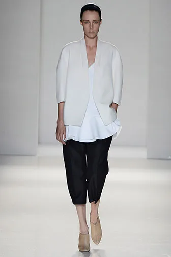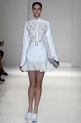 Victoria chose a simple monochrome look for the show.