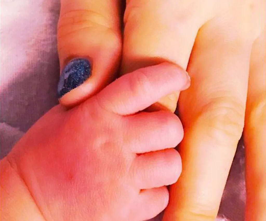 Holly let the photo do all the talking, simply posting an intimate snap of her new son grabbing one of her fingers and holding tight alongside heart emojis.