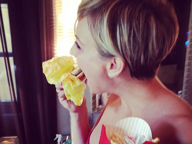 Just hours before the Emmy Awards got underway, Kaley Cuoco-Sweeting managed to find time to scoff down some McDonald’s. The blonde beauty feasted on a hamburger and fries, before sharing this snap on Instagram.