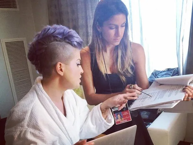 Fashion Police star, Kelly Osbourne, has a last minute run-through before hosting live from the red carpet.