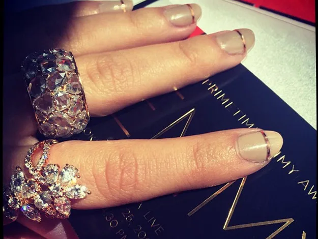 Stunning Sarah Hyland shared a snap of her freshly painted nails and Emmy ticket on Instagram along with the caption:”On my way to the #emmys with my @essiepolish mani! Thank you for helping me pick my Emmy nail look.”