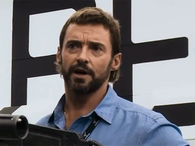 Hugh stars as Vincent – the villain of the film, who is determined to capture and turn the movie’s robot protagonist into scrap-metal