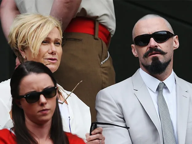 Hugh then spent most of the summer with his distinctive new look! Here he sat courtside at Wimbledon with Deborra-Lee.