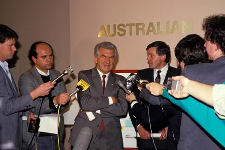 Bob Hawke faces the media scrum during his 1987 Labor Campaign. He held his postion from 1983 to 1991.