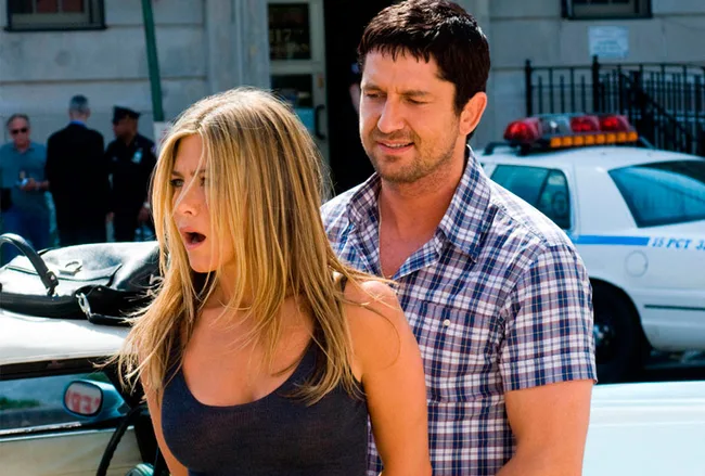 Jen and Gerry in a scene from their movie Bounty Hunter