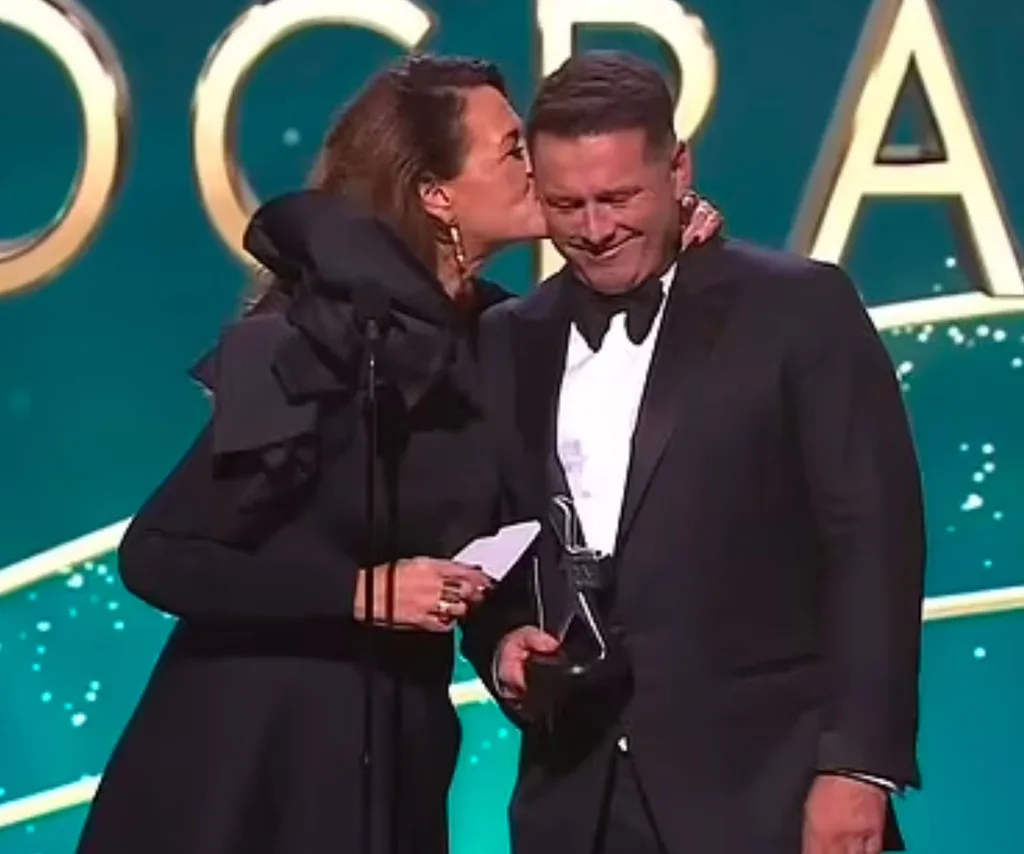 The crowd was left howling when Ten’s Chrissie Swan and Nine’s Karl Stefanovic took the stage to present the Logie for Most Popular Lifestyle Program.