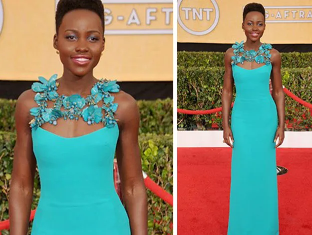 Lupita Nyong’o was a stand out at the SAG Awards in her one-of-a-kind Turquoise Gucci gown.