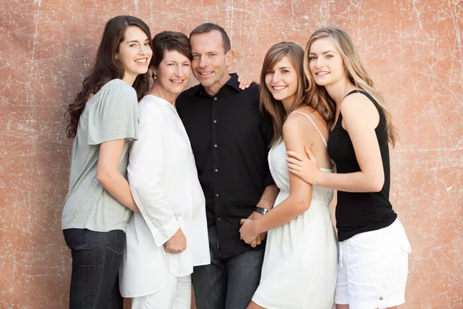 Liberal Leader Tony Abbott with his family for our ‘Abbott’s Women’ feature in 2013.