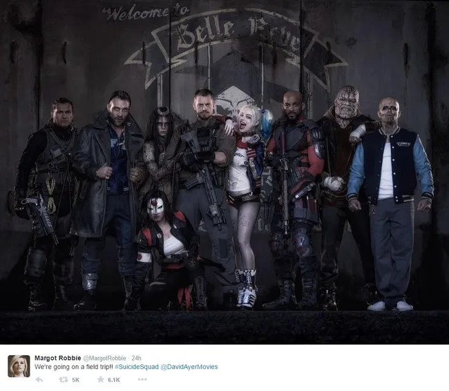 Suicide Squad director, David Ayer tweeted a picture of Robbie with the cast captioned: “Task Force X assembled and ready. #SuicideSquad”