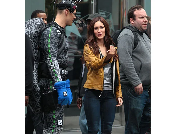 Megan Fox steps out on set of Teenage Mutant Ninja Turtles looking super slim after giving birth to her second child.