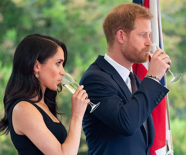 At the function, the Duchess of Sussex was pictured raising a glass of what looks to be champagne during a toast.