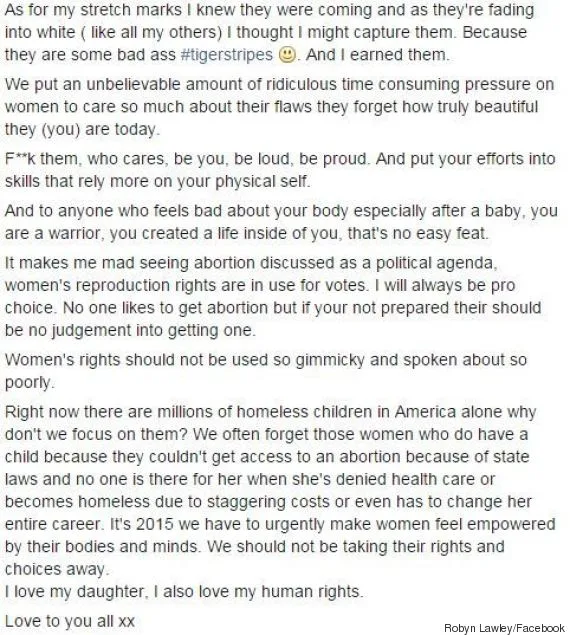 She’s one of Australia’s most well-known models and earlier today, 26-year-old Robyn Lawley took to social media to respond to claims that she’d considered an abortion because she didn’t want stretchmarks.