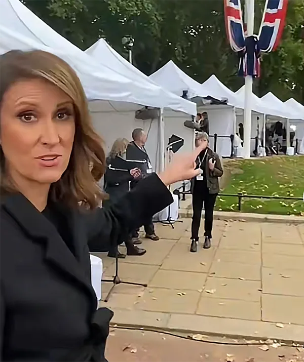 Taking to the Sunrise TikTok account, Nat took viewers on an impromptu tour of Channel Seven’s marquee set-up outside Buckingham Palace in London.