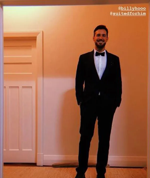 “Hey babe, you scrub up alright,” the 31-year-old penned alongside a snapshot of the pair dressed to the nines before heading out to a black-tie event.