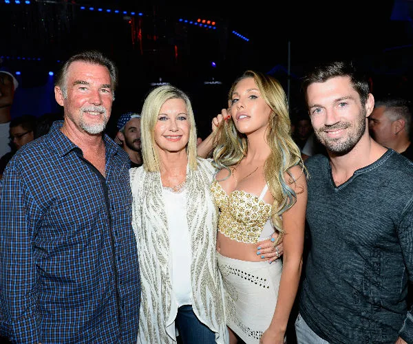 Olivia Newton John with daughter Chloe and Patrick McDermott at the Mamma Mia! musical New York opening night in 2001.