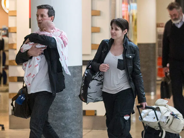 New dad Rove McManus arrived in Sydney last week with his baby girl Ruby and actress wife Tasma Walton.